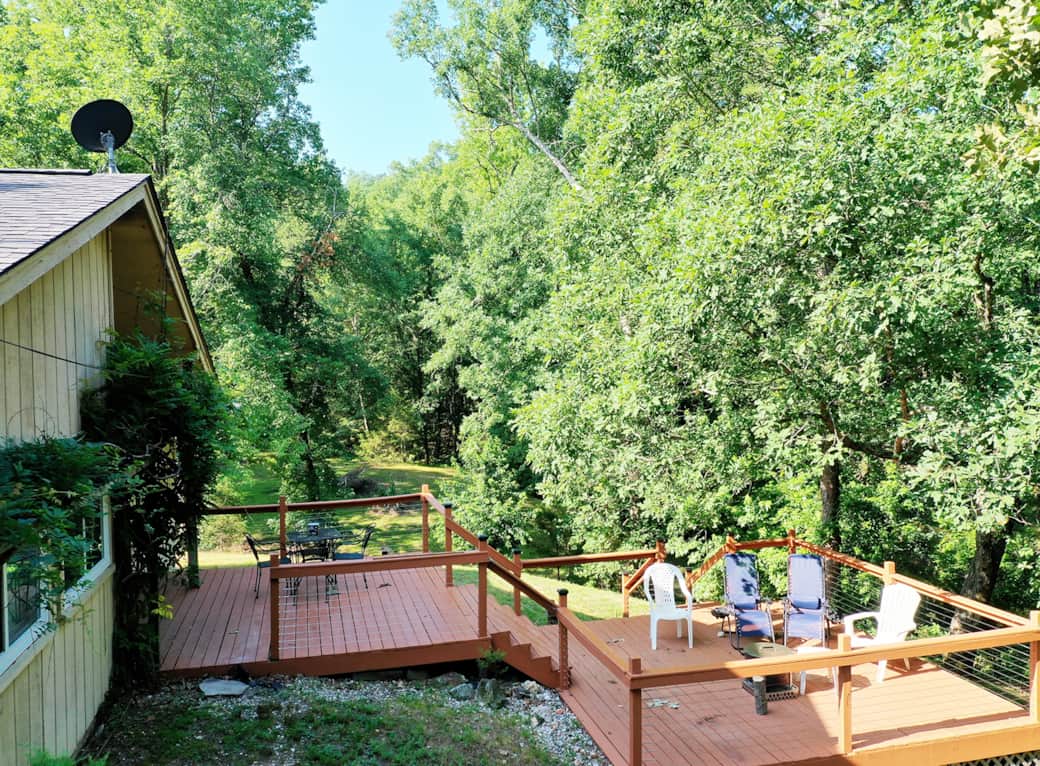 Watch the deer as you sip your morning coffee on the front porch and enjoy the sunrise. Outdoors there are 10 acres to explore. As you hike through the woods keep an eye out for crystals, the abundant wildlife, and the seasonal streams that trickle down creating waterfalls and small clear pools.